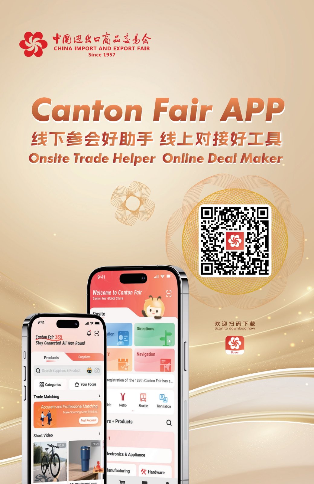 广交会由中国商务部和广东省人民政府共同主办、中国对外贸易中心承办。自1957年创办以来,每年春秋两季在中国广州举行,迄今已成功举办了138届。广交会是中国目前历史最长、规模最大、商品最全、采购商最多且来源最广、成交效果最好、信誉最佳的综合性国际贸易盛会。第138届广交会共有来自223个国家和地区的超31万境外采购商线下参会,创历史新高。